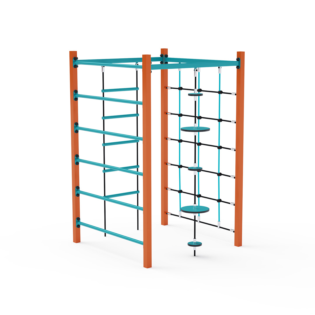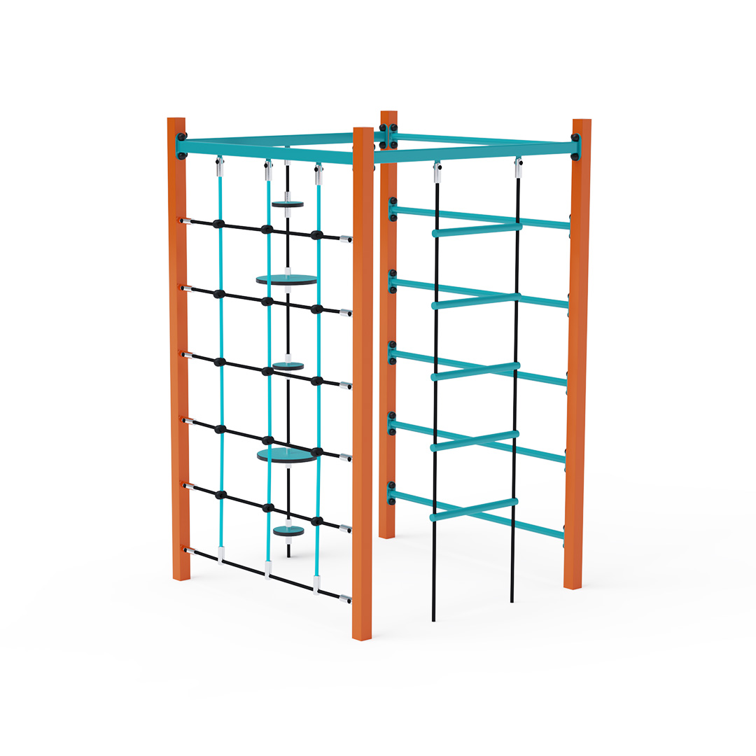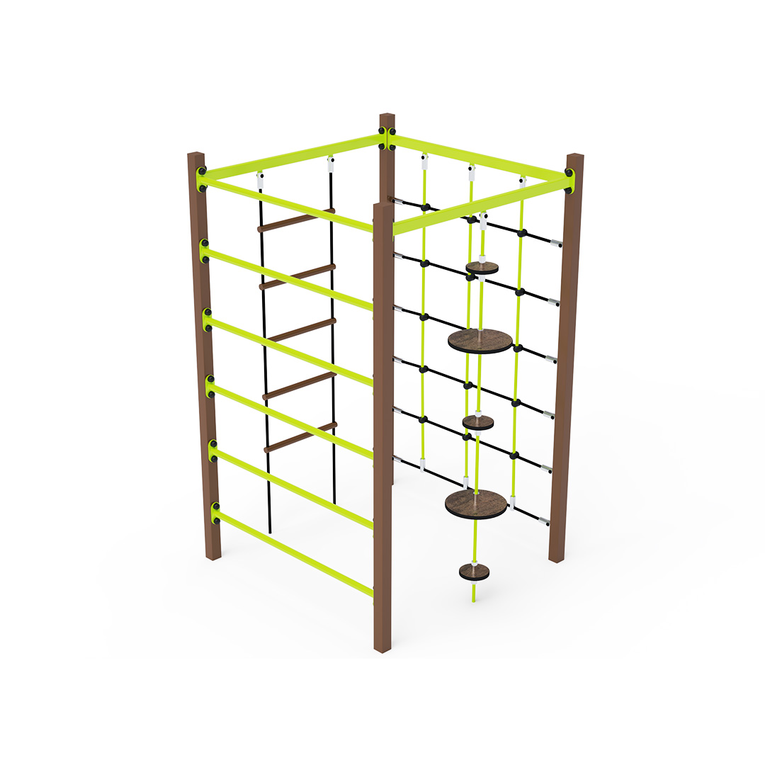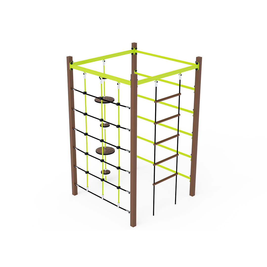 Lanové gymcentrum, to je kostka s lanovou sítí, žebříkem, dlouhými žebřinami a lana s balančními talíři. Herní prvek je vyroben ze žárově pozinkované oceli s kvalitní povrchovou úpravou, spoje jsou nerezové a zakryté plastovými krytkami pro zvýšení bezpečnosti a životnosti spojů. Lana jsou vyrobena z polyesterových vláken, která jsou vinutá kolem středu. Tato konstrukce lana zvyšuje jeho pevnost a odolnost proti mechanickému namáhání. Polyester má mnoho kladných vlastností. Je odolný vůči mikroorganismům, povětrnostním vlivům, rychle schne po dešti, je stálobarevný a vyznačuje se vysokou pevností. Lanové gymcentrum VVZ-GYM002-1 je certifikováno podle normy STN EN 1176.