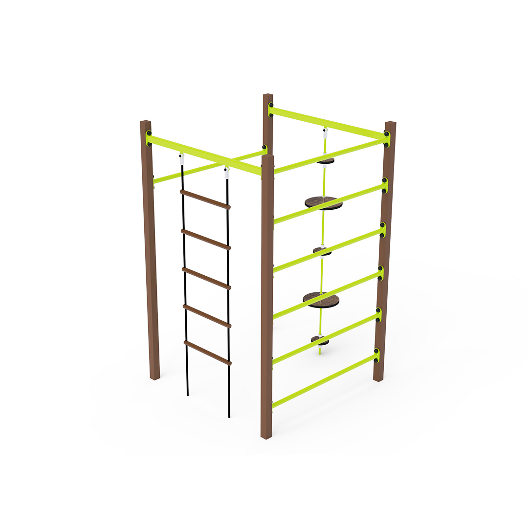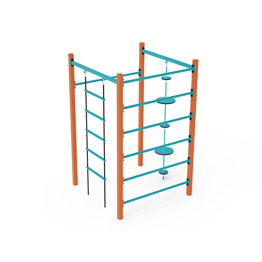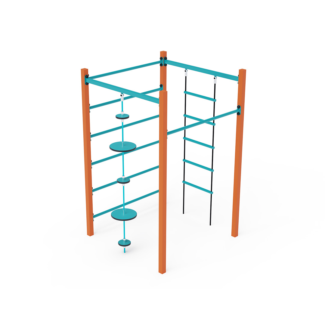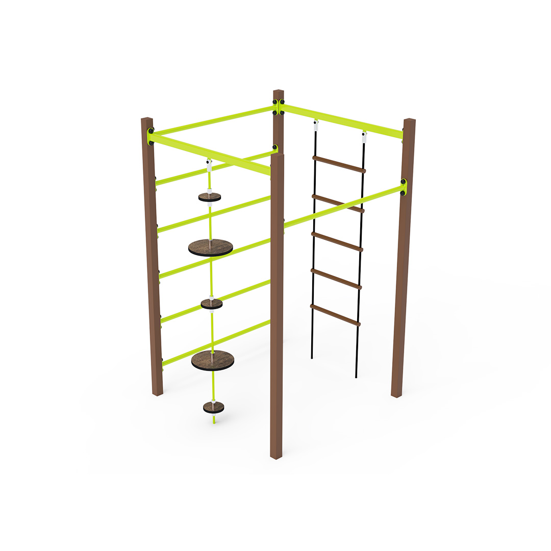 Lanové gymcentrum, to je kostka s hrazdou, žebříkem, dlouhými žebřinami a lana s balančními talíři. Herní prvek je vyroben ze žárově pozinkované oceli s kvalitní povrchovou úpravou, spoje jsou nerezové a zakryté plastovými krytkami pro zvýšení bezpečnosti a životnosti spojů. Lana jsou vyrobena z polyesterových vláken, která jsou vinutá kolem středu. Tato konstrukce lana zvyšuje jeho pevnost a odolnost proti mechanickému namáhání. Polyester má mnoho kladných vlastností. Je odolný vůči mikroorganismům, povětrnostním vlivům, rychle schne po dešti, je stálobarevný a vyznačuje se vysokou pevností. Lanové gymcentrum VVZ-GYM002-2 je certifikováno podle normy STN EN 1176.