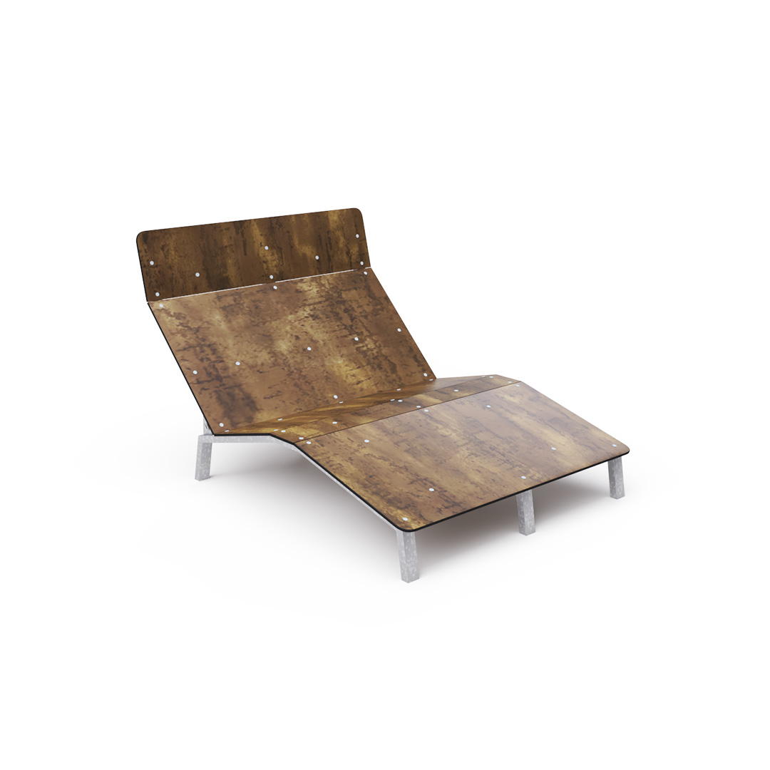 Designové dvojlehátko vhodné do oddechových zón, které je primárně určeno do exteriéru - parky, hřiště, ale i do interiéru - nákupní centra, letištní haly apod.