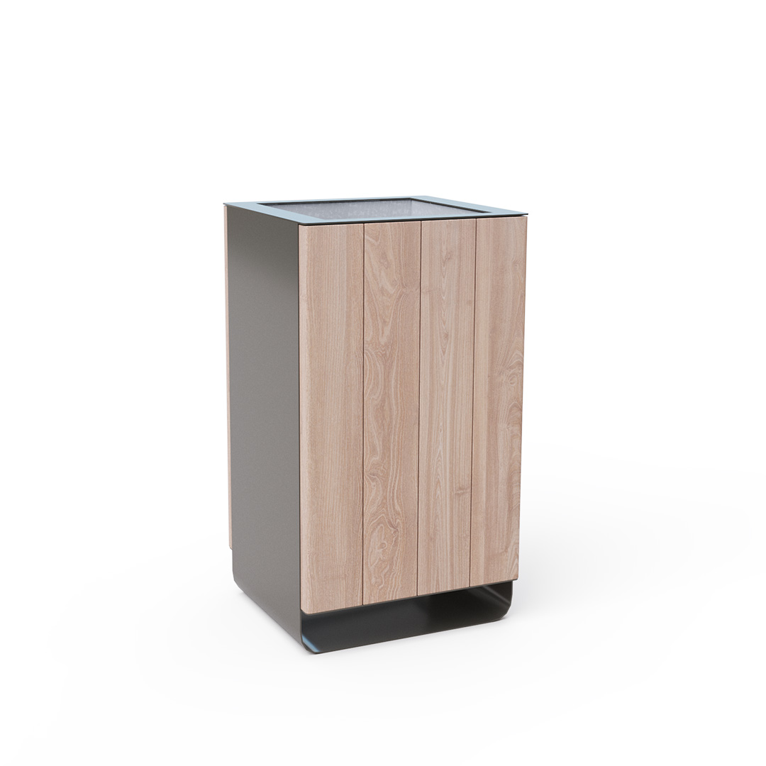 Designový odpadkový koš o objemu 60l vhodný nejen do exteriéru - parky, hřiště, ale i do interiéru - nákupní centra, letištní haly, vstupní haly apod.