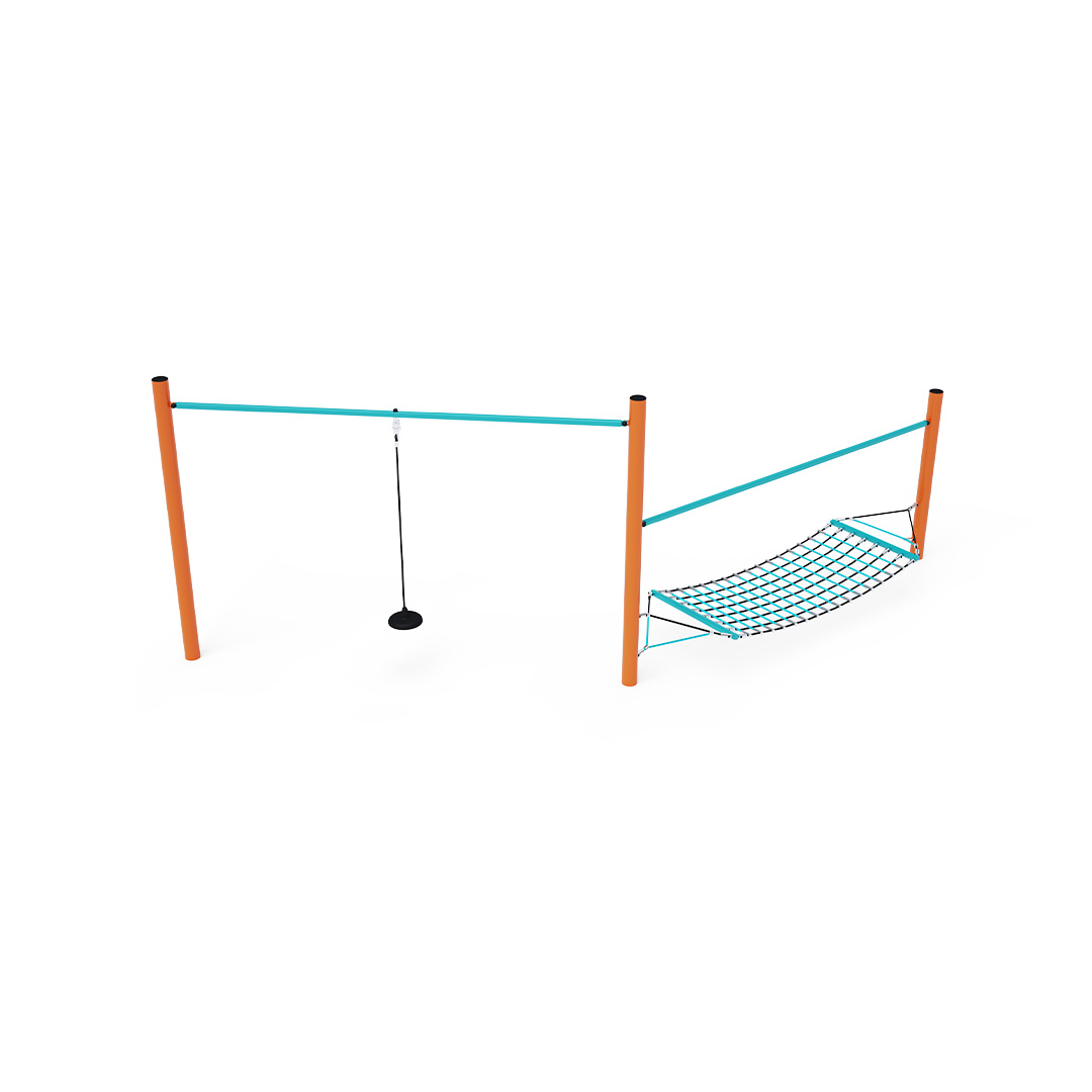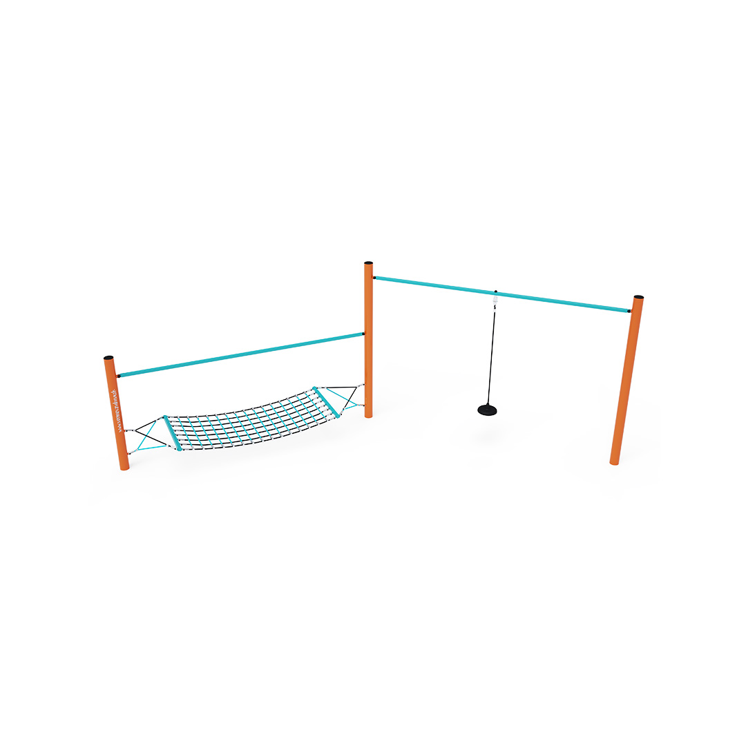 Opičí dráha vytvořená kombinací dvou částí. Jedna část je vhodná k balancování nebo odpočinku. Druhá část jako volně zavěšené lano se širokým koncem, jednoduchý ale velice všestranný element. Herní prvek je vyroben ze žárově zinkované oceli s kvalitní povrchovou úpravou, spoje jsou nerezové a zakryté plastovými krytkami pro zvýšení bezpečnosti a životnosti spojů. Lana jsou vyrobena z polyesterových vláken, která jsou vinuta kolem středu. Tato konstrukce lana zvyšuje jeho pevnost a odolnost proti mechanickému namáhání. Samotný polyester má spoustu kladných vlastností. Je odolný vůči mikroorganismům, povětrnostním vlivům, rychle schne po dešti, je stálobarevný a vyznačuje se vysokou pevností.