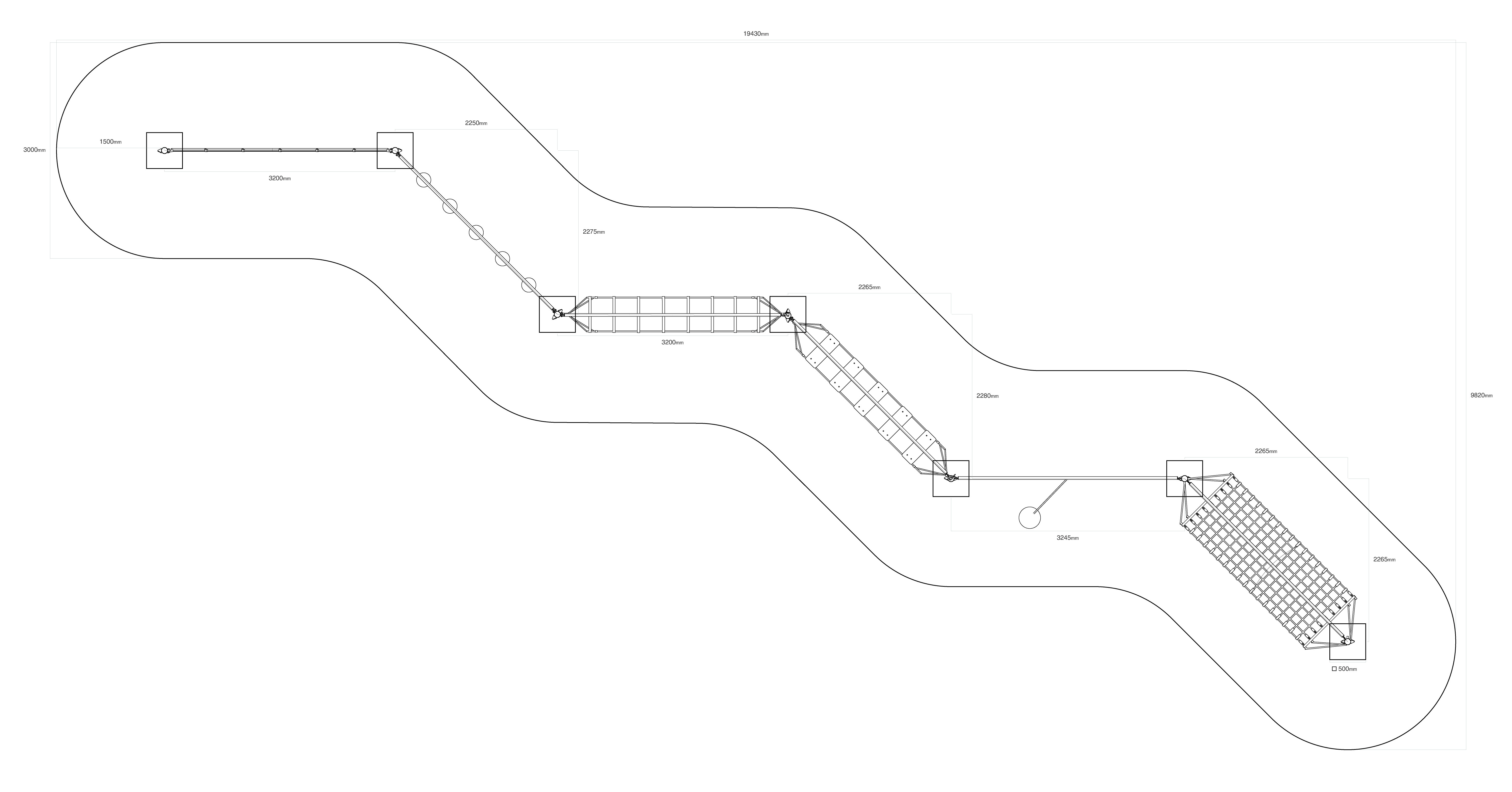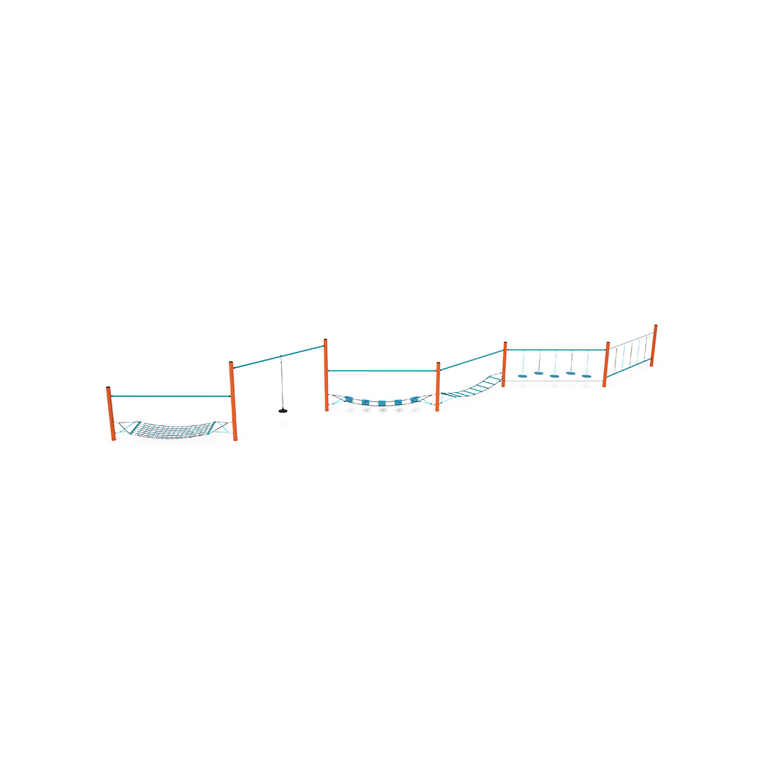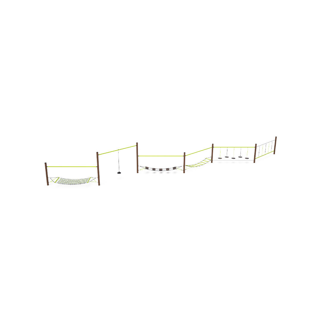 Opičí dráha vytvořená kombinací šesti částí: balanční tyč s lanem, volně zavěšené kameny, balanční žebřík, balanční nášlapy, volně zavěšené lano a houpací síť. Herní prvek je vyroben ze žárově zinkované oceli s kvalitní povrchovou úpravou, spoje jsou nerezové a zakryté plastovými krytkami pro zvýšení bezpečnosti a životnosti spojů. Lana jsou vyrobena z polyesterových vláken, která jsou vinuta kolem středu. Tato konstrukce lana zvyšuje jeho pevnost a odolnost proti mechanickému namáhání. Samotný polyester má spoustu kladných vlastností. Je odolný vůči mikroorganismům, povětrnostním vlivům, rychle schne po dešti, je stálobarevný a vyznačuje se vysokou pevností.