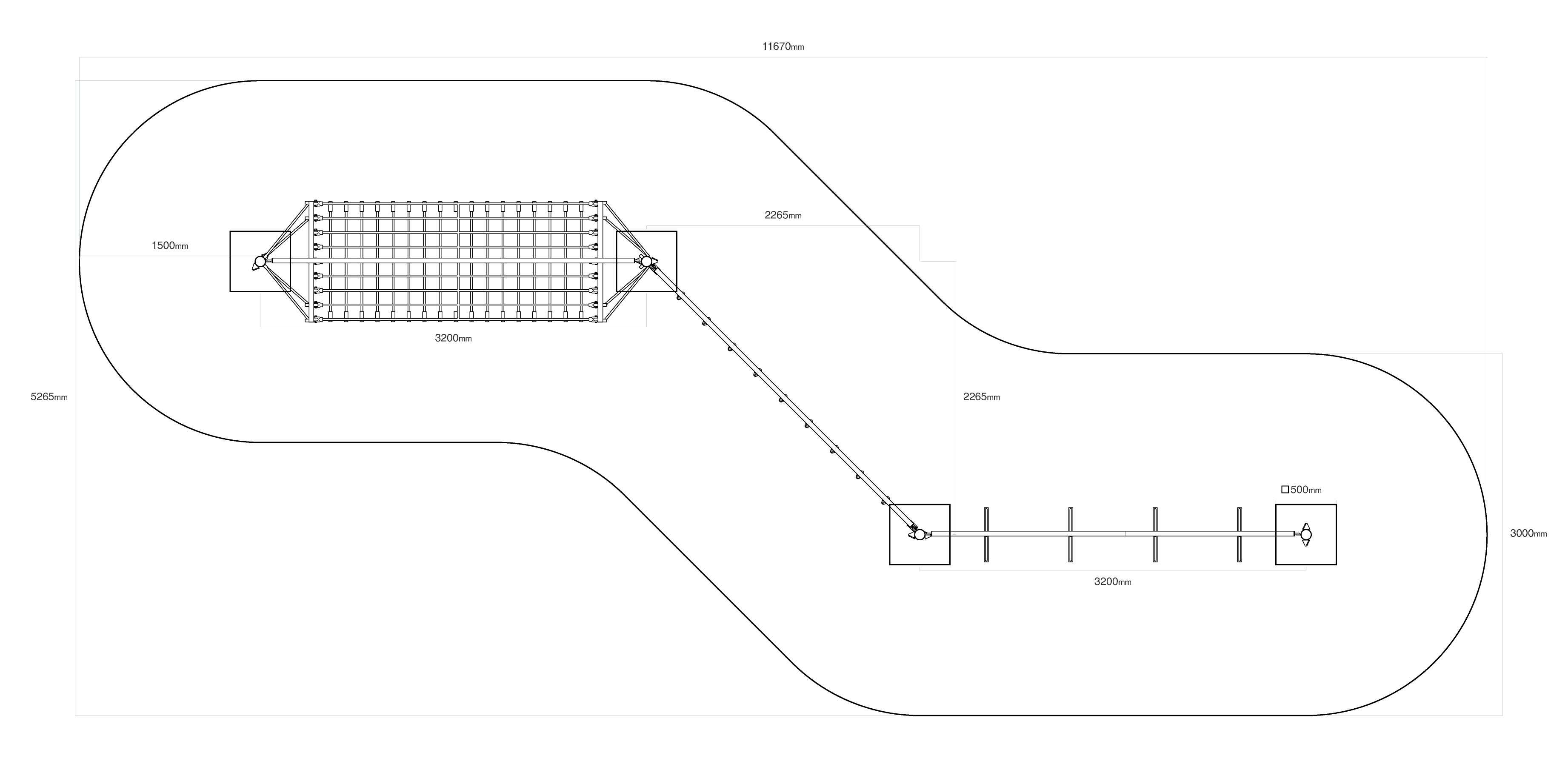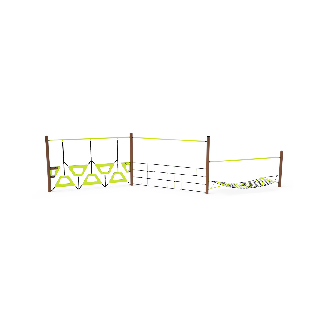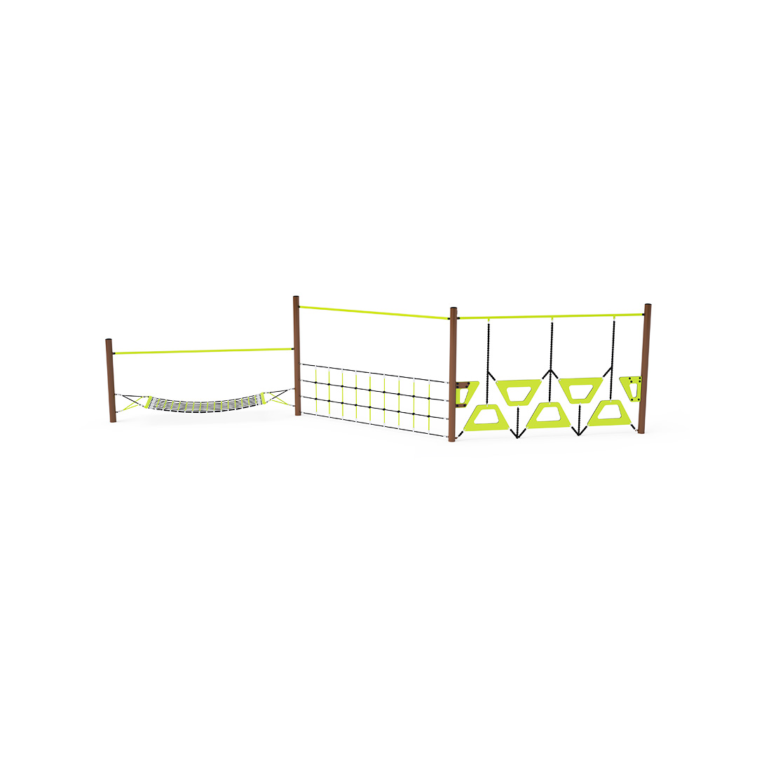Opičí dráha vytvořená kombinací tří částí - lanové sítě, lanové stěny a lichoběžníkové stěny. Překonávání tohoto herního prvku je nejen zábava, ale také námaha. Herní prvek je vyroben ze zinkované oceli s kvalitní povrchovou úpravou - práškovým lakováním, spoje jsou nerezové a zakryté plastovými krytkami pro zvýšení bezpečnosti a životnosti spojů. Lana jsou vyrobena z polyesterových vláken s ocelovým jádrem, které jsou vinuty kolem středu. Tato konstrukce lana zvyšuje jeho pevnost a odolnost proti mechanickému namáhání. Samotný polyester má spoustu kladných vlastností. Je odolný vůči mikroorganismům, povětrnostním vlivům, rychle schne po dešti, je stálobarevný a vyznačuje se vysokou pevností a odolností.