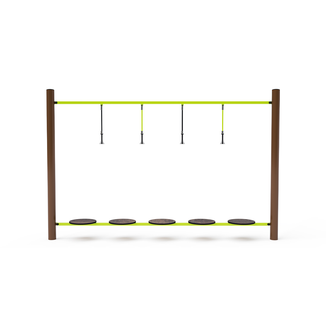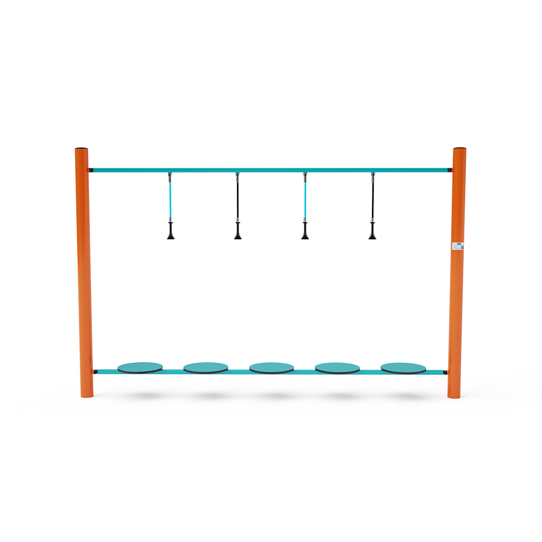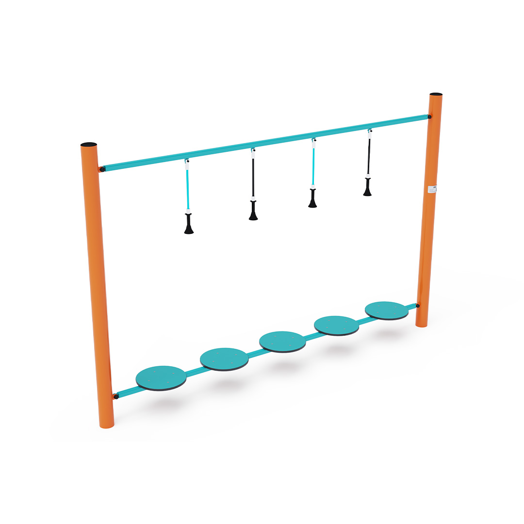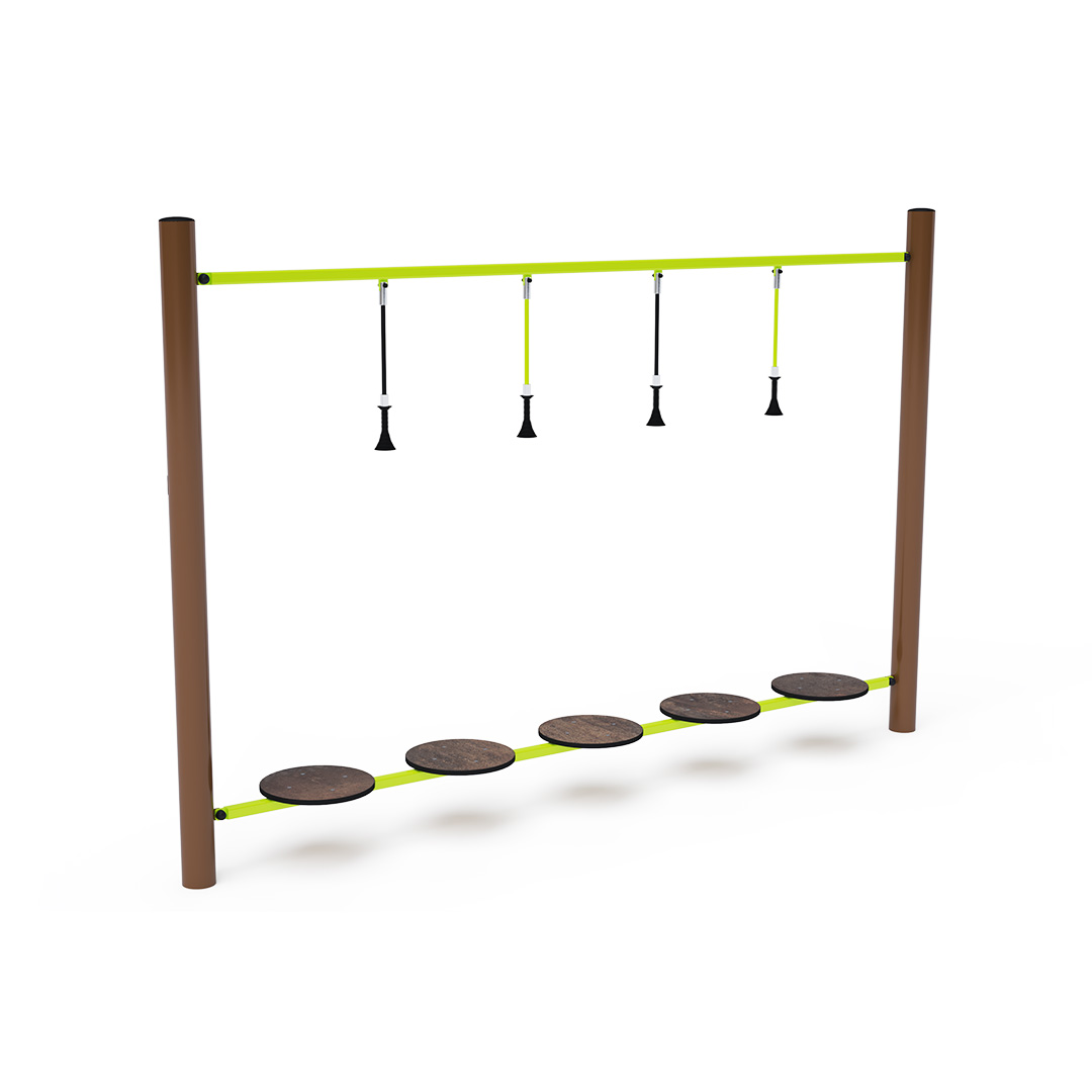 Opičí dráha vytvořená balančními nášlapy HPL s pomocnými svislými lany. Každé dětské hřiště je s opičí dráhou zábavnější. Herní prvek je vyroben ze žárově zinkované oceli s kvalitní povrchovou úpravou, spoje jsou nerezové a zakryté plastovými krytkami pro zvýšení bezpečnosti a životnosti spojů. Lana jsou vyrobena z polyesterových vláken, která jsou vinutá