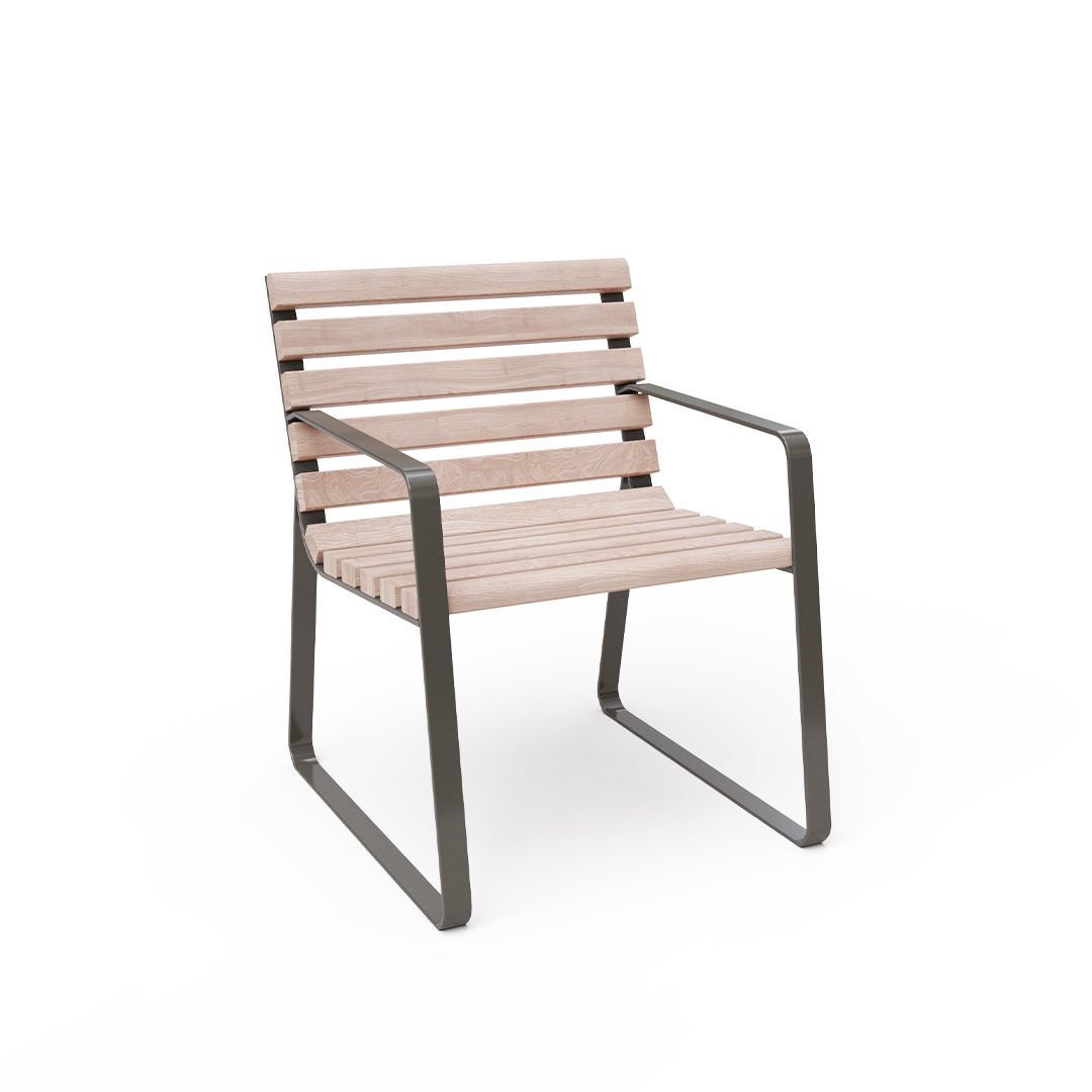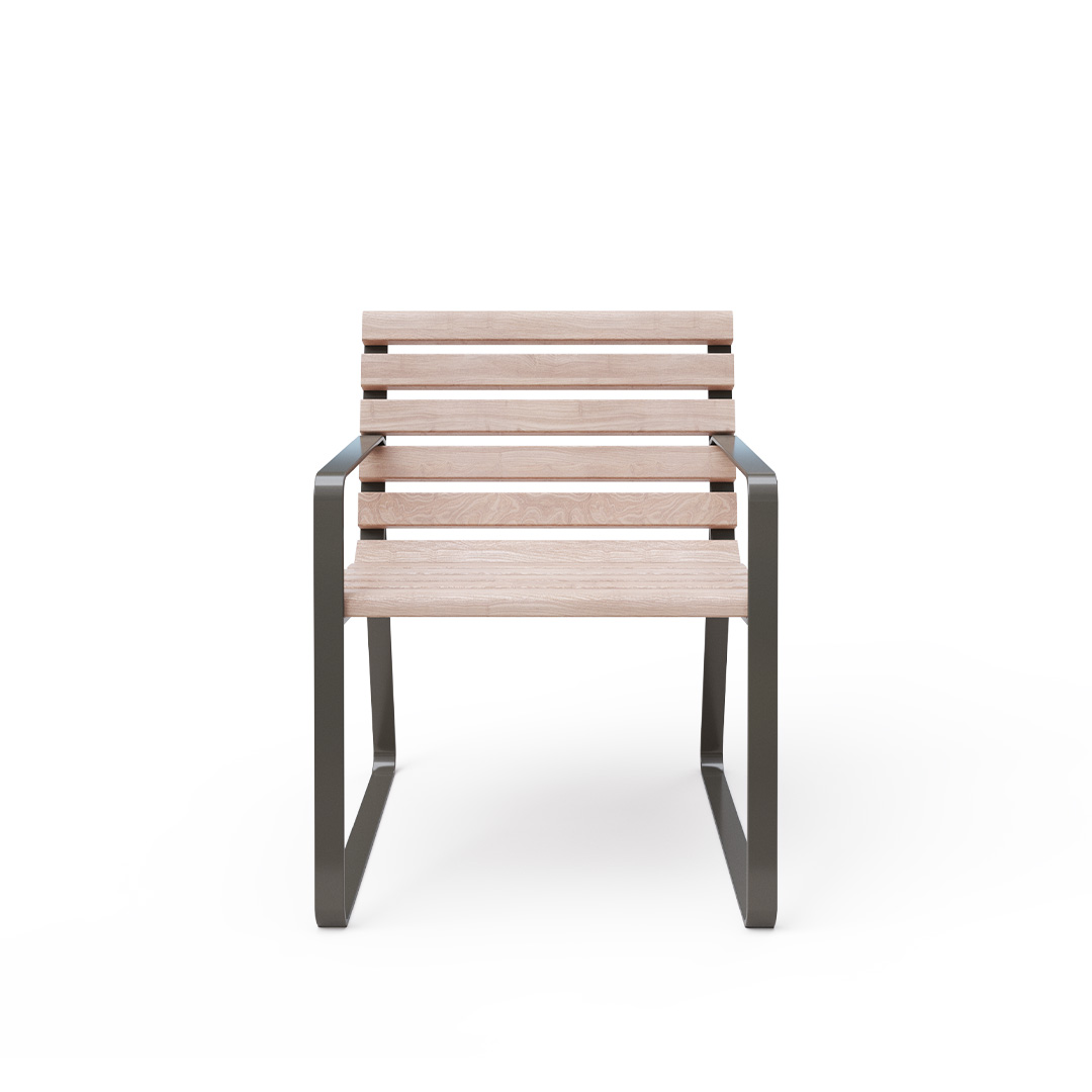Sedák a opěradlo: />Použitý materiál: Zinkovaná a práškovaná ocel, tropické dřevo, nerezový spojovací materiál