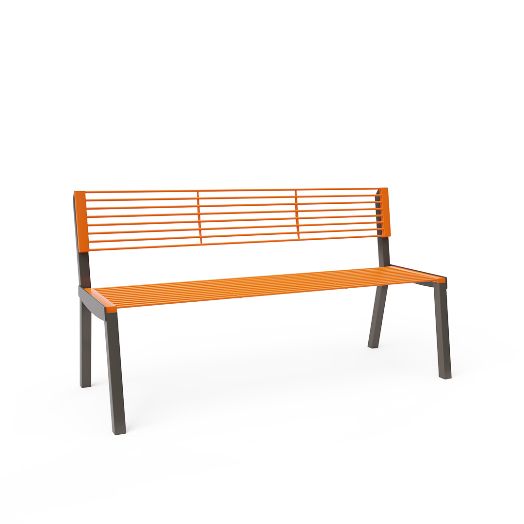 Designová parková lavička s opěradlem vhodná nejen do exteriéru - parky, hřiště, náměstí ale i do interiéru - nákupní centra, letištní haly, vstupní haly apod.