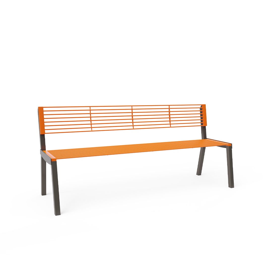 Designová parková lavička s opěradlem vhodná nejen do exteriéru - parky, hřiště, náměstí ale i do interiéru - nákupní centra, letištní haly, vstupní haly apod.