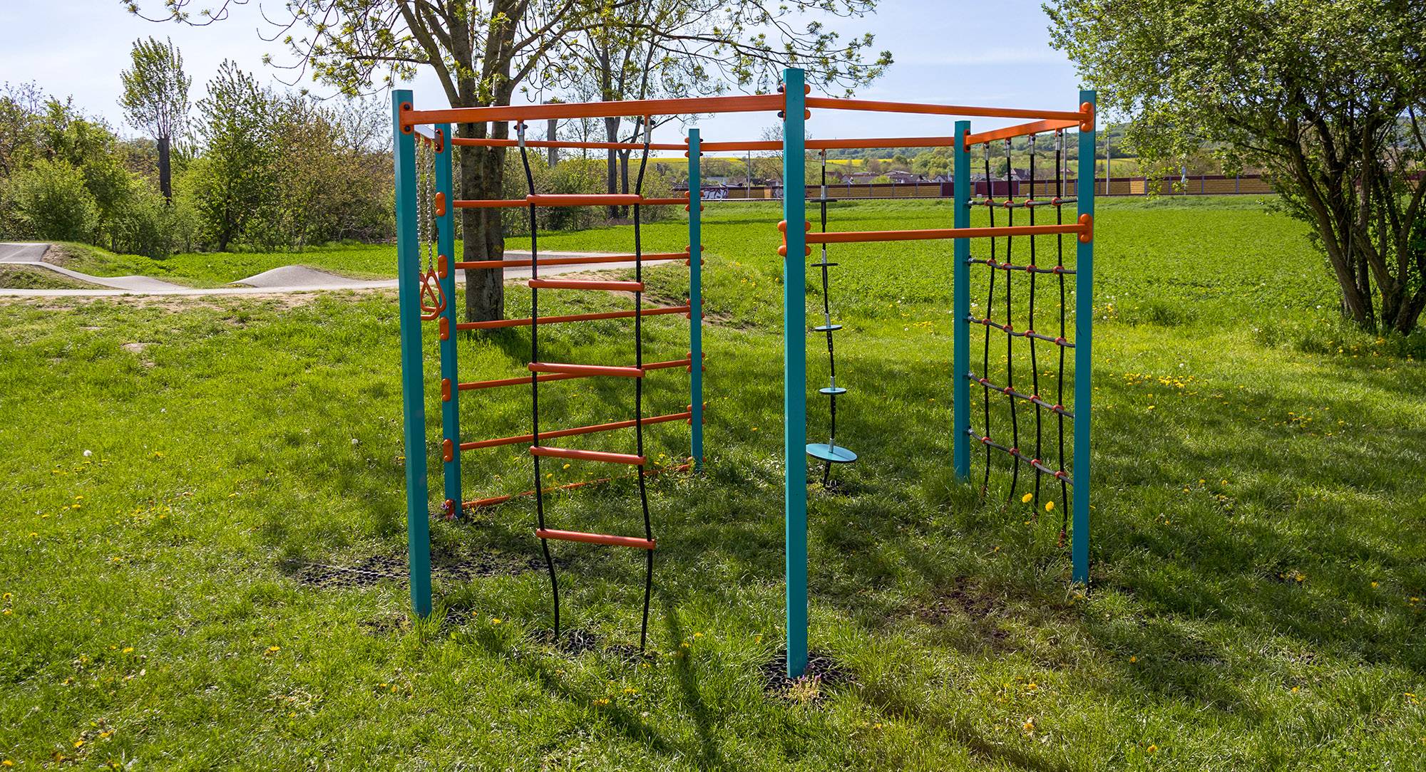 Taková konstrukce složená z dlouhé žebřiny, atletických kruhů, lana s balančními talíři, lanové lezecké síti, žebříku a dvojité hrazdy je oblíbená zejména na veřejných dětských hřištích i ve školních areálech, kde děti mohou trávit aktivní čas venku.