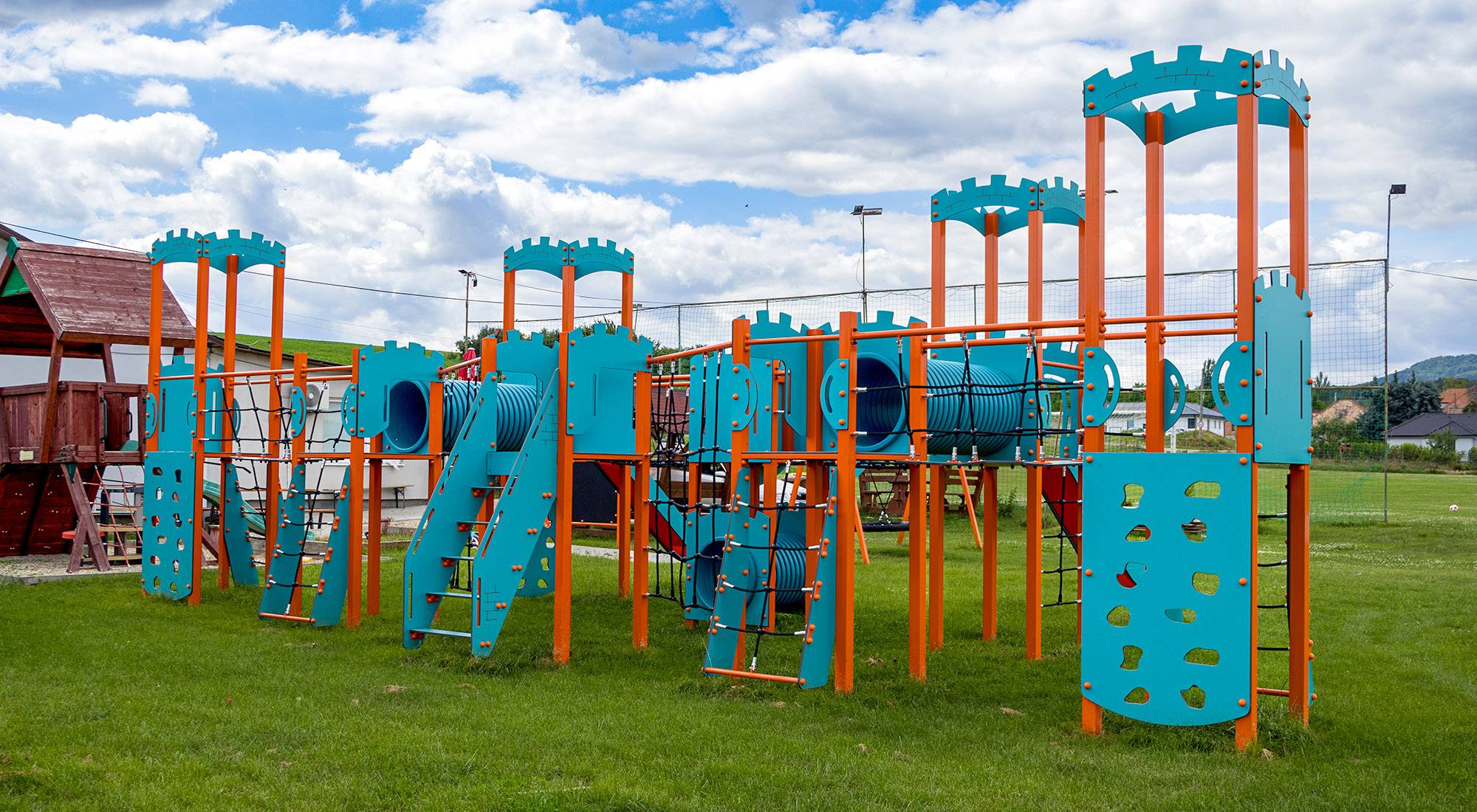 Dominantou je věžová sestava, která poskytuje dětem řadu možností pro pohyb, dobrodružství a kreativní hru. Její stabilní konstrukce a pestré komponenty podporují motoriku, odvahu a nová kamarádství.