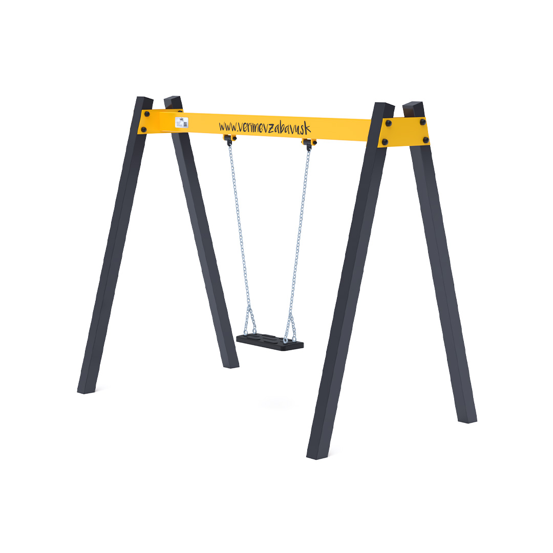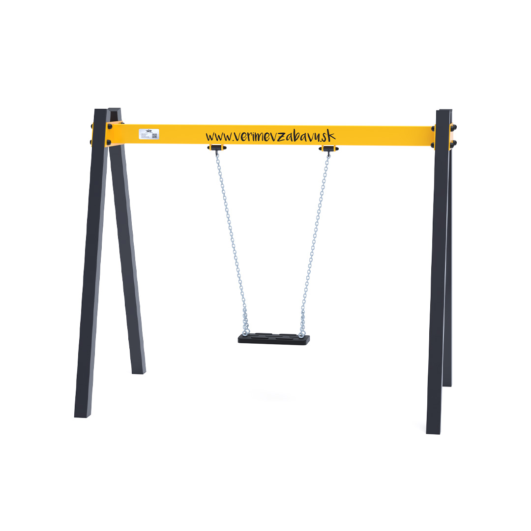 Závěsná houpačka pro jedno dítě je vyrobena z žárově zinkované oceli, která je upravena práškovou vypalovací barvou. Spojovací materiály jsou nerezové a zakryté plastovými krytkami pro zvýšení životnosti a bezpečnosti. Houpačka VVZ-VH001 je certifikována dle normy ČSN EN 1176. Jako dopadovou plochu doporučujeme použít zatravňovací rohož.