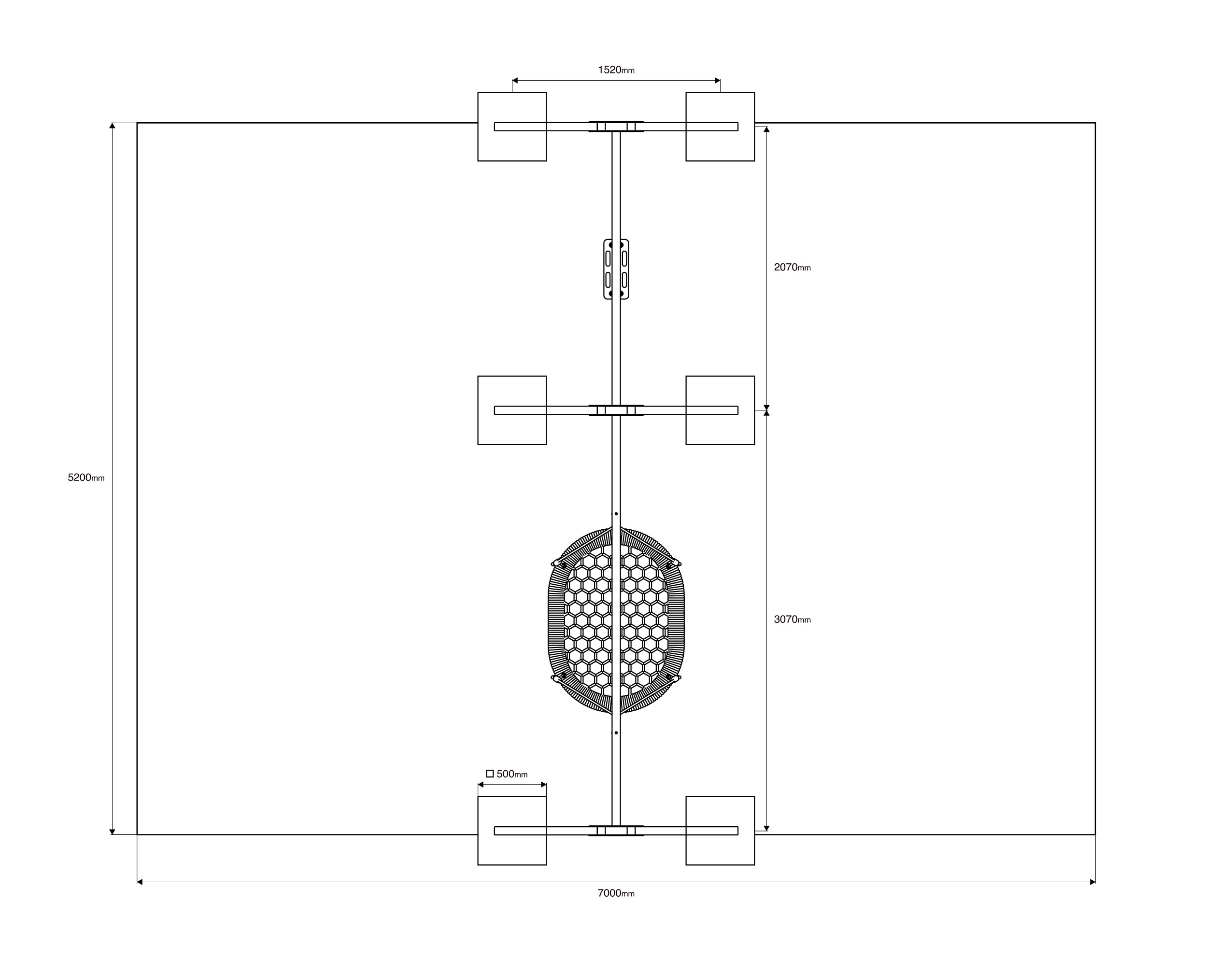 Dopadová plocha: 7,5 × 5,3 m (v souladu s ČSN EN 1177)