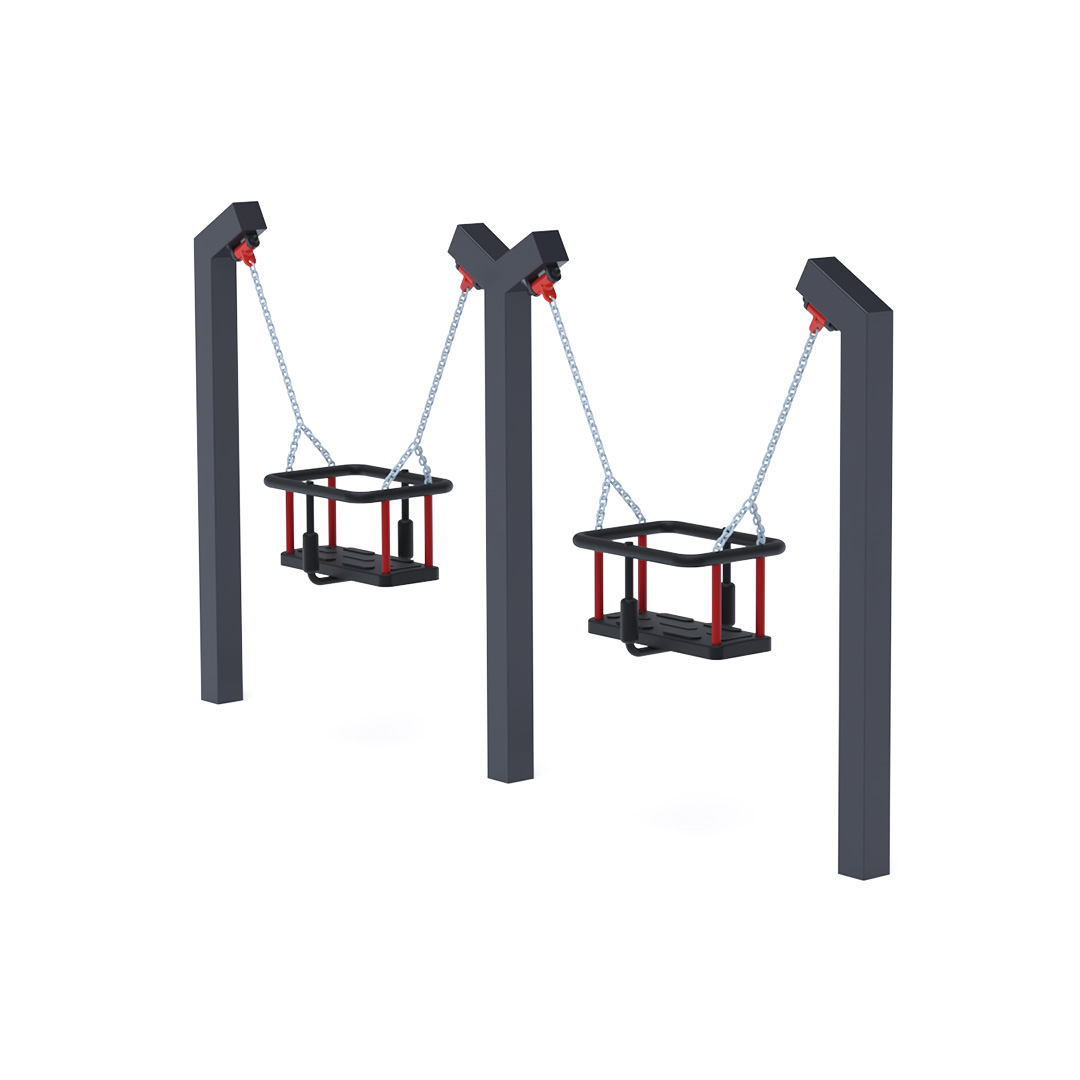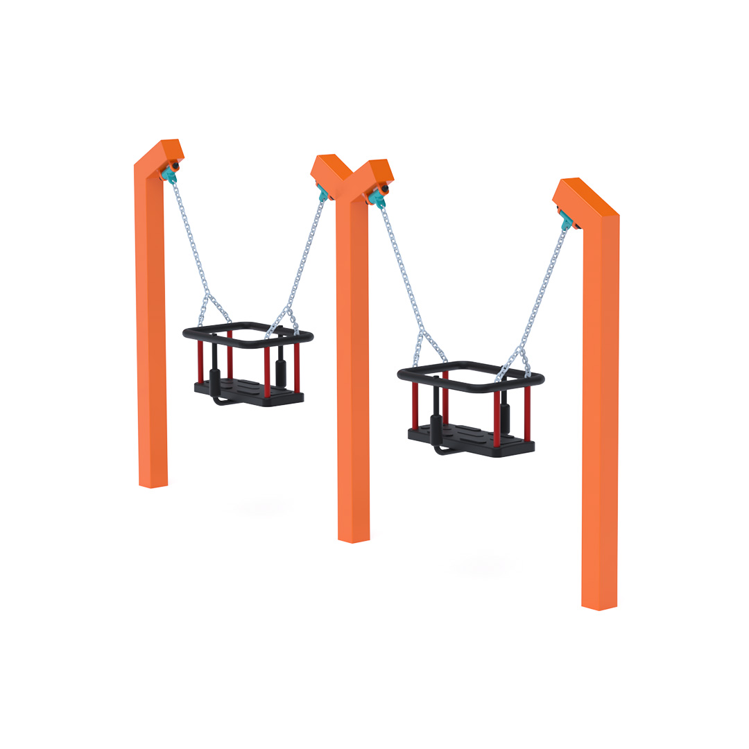 Závěsná houpačka pro nejmenší, vhodná pro mateřské školy a základní školy, je vyrobena z žárově zinkované oceli, která je upravena práškovou vypalovací barvou. Spojovací materiály jsou z nerezové oceli a zakryty plastovými krytkami pro zvýšení životnosti a bezpečnosti. Konstrukce sestavy umožňuje více sedáků za sebou podle potřeby. Jako dopadovou plochu doporučujeme použít zatravňovací rohož.