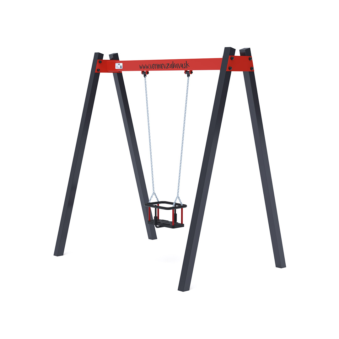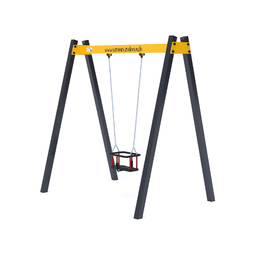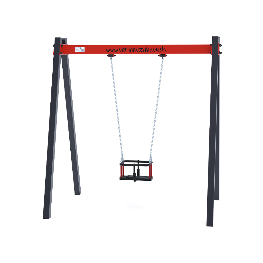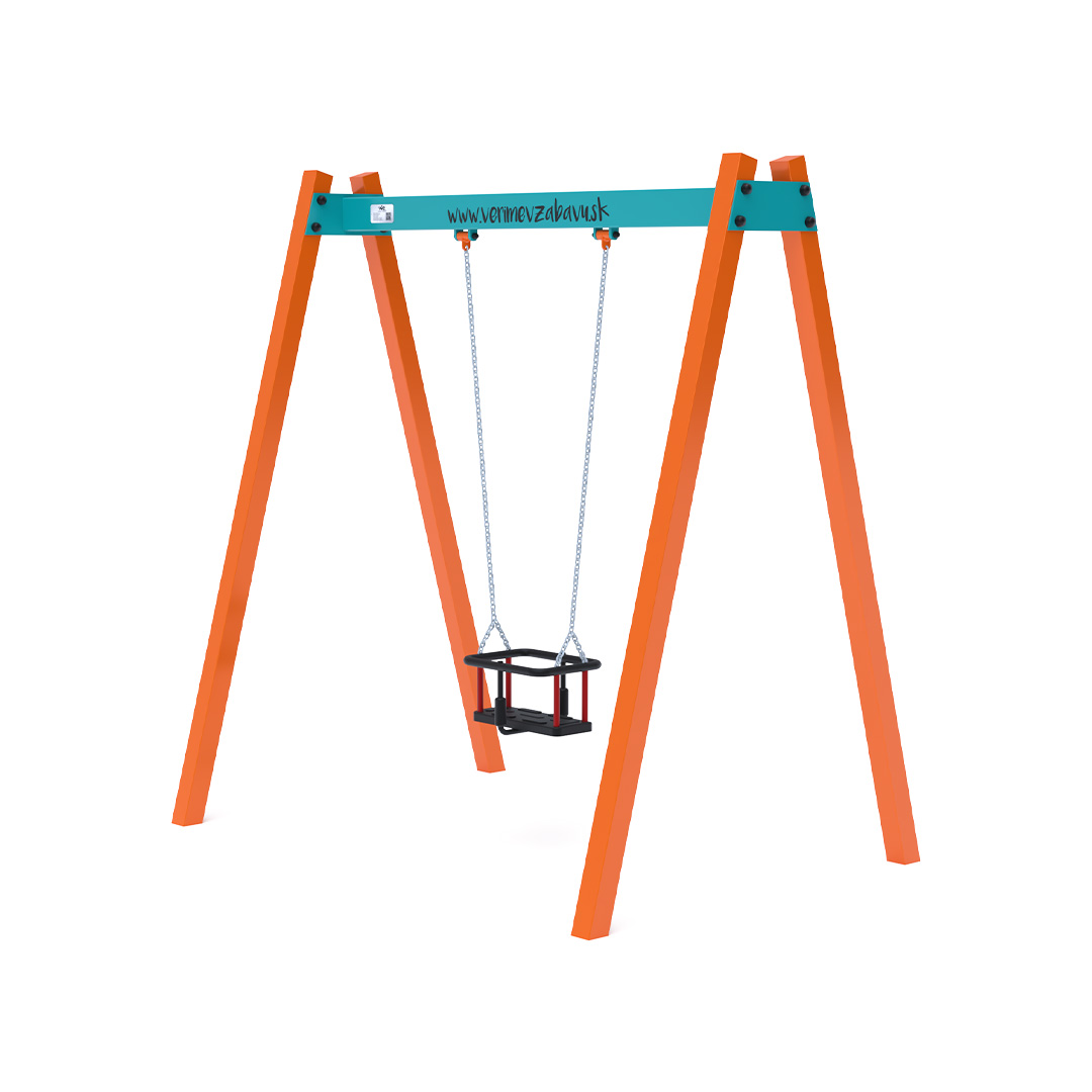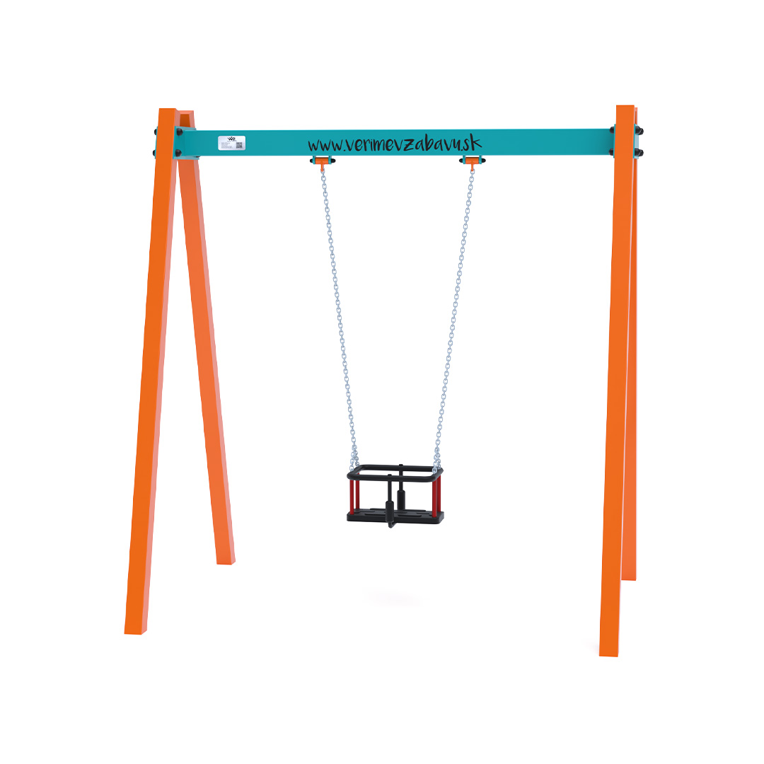Visiaca houpačka s baby sedákem pro jedno dítě je vyrobena z žárově zinkované oceli, která je upravena práškovou vypalovanou barvou. Spojovací materiály jsou nerezové a zakryté plastovými krytkami pro zvýšení životnosti a bezpečnosti. Houpačka VVZ-VH002 je certifikována podle normy STN EN 1176. Jako dopadovou plochu je vhodné použít zatravňovací rohož.