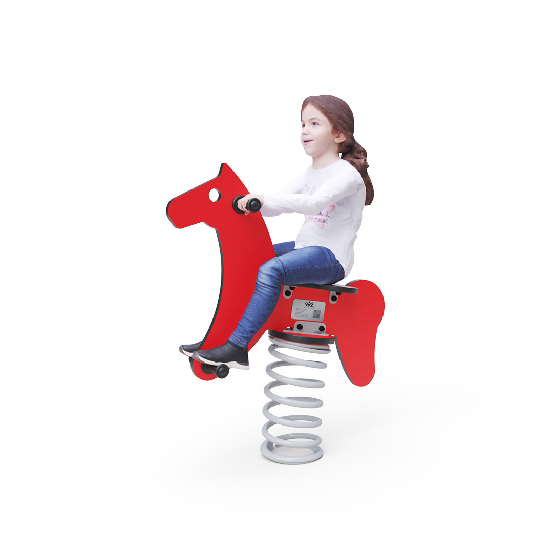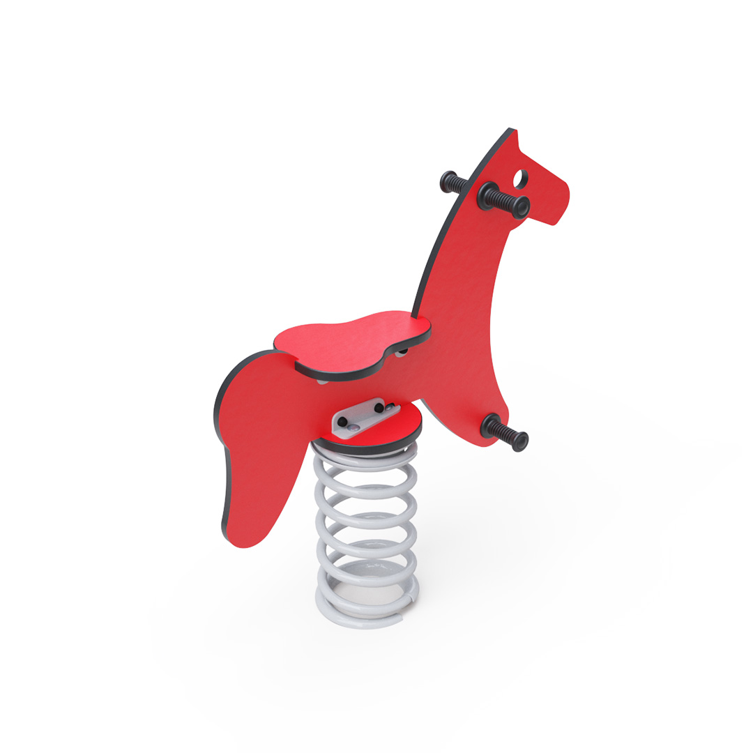 VVZ-SH003 Pružinová houpačka Koník   Materiály a konstrukce pružinové houpačky s motivem koně zaručují dlouhou životnost a bezpečnost. Ocelová pružina s odolnou povrchovou úpravou a HPL materiálu zaručují trvanlivost, barevnou stálost a bezpečnost. Materiál HPL je chemicky odolný, trvanlivý. odolný vůči UV záření, netoxický, recyklovatelný a nerozbitný. Nehrozí, že by se děti poranily o ostré hrany nebo střepy. Pružinové houpačky lze umístit na travnaté, štěrkové nebo pískové hřiště, případně lze pod houpačku použít travní rohož, gumovou rohož nebo EPDM. Všechny pružinové houpačky splňují bezpečnostní normu STN EN 1176.     Specifikace   Pružinová houpačka Konik VVZ-SH003 je certifikována podle normy STN EN 1176. Věková kategorie: 2 - 14 let Nosnost:1 osoba Rozměry prvku:0,8 x 0,2 x 0,9 m (DxŠxV) Výška volného pádu: až 0,55 m Plocha dopadu: 3,3 x 3,9 m (podle normy EN 1176-1) Materiál: Materiál: pozinkovaná a práškově lakovaná ocel, materiál HPL hr.19 mm, spojovací materiál z nerezové oceli