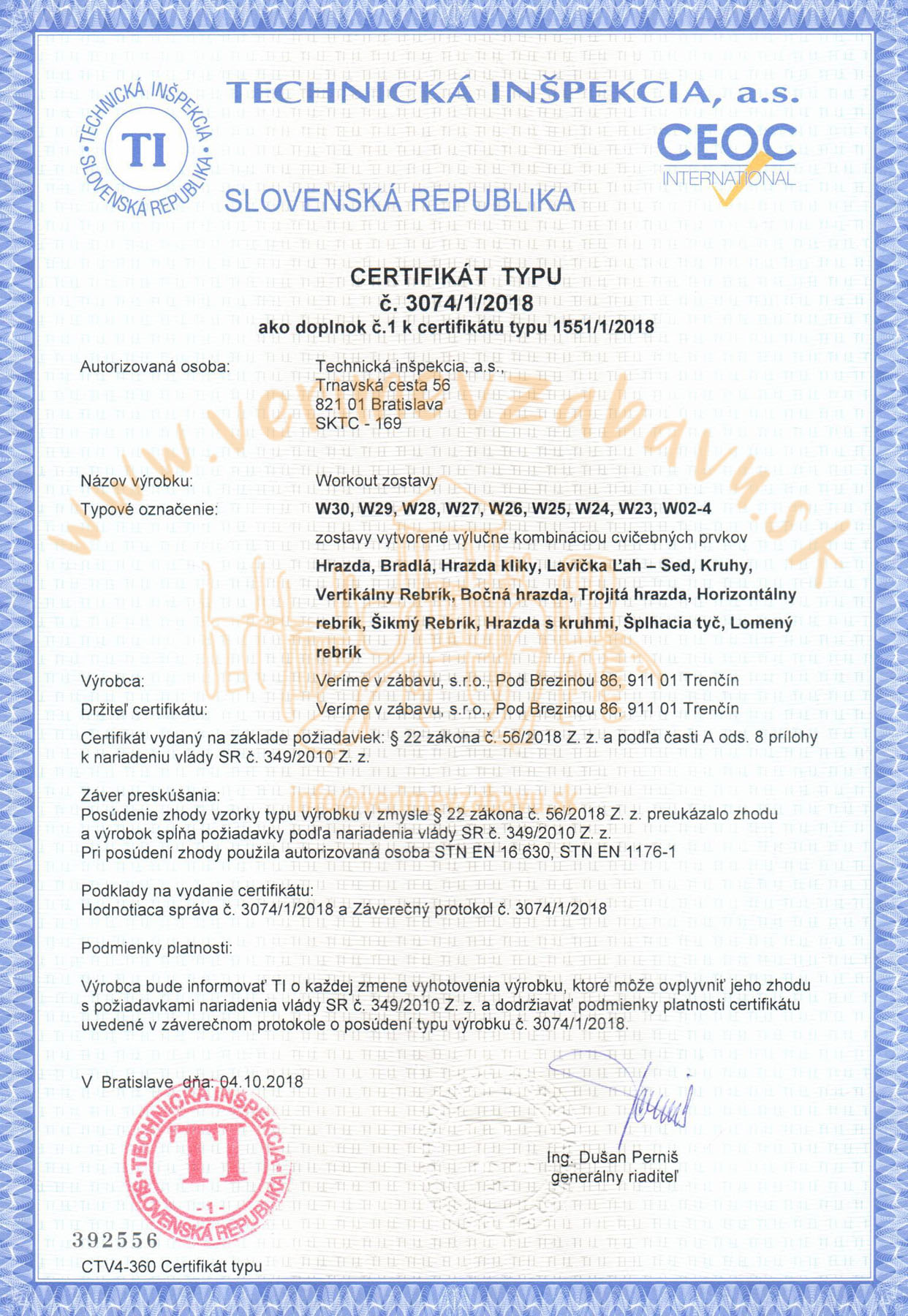 Všechny naše prvky v nabídce prošly kontrolou Technické inspekce a.s., podle příslušné normy, což dokazují i certifikáty které můžete najít na webu u každého produktu. Přestože jsou všechny naše výrobky schváleny Technickou inspekcí a.s., nejpřísnějšími kontrolory jsou pro nás ti, kteří se na cestu za zábavou vydají – a nejsou to jen děti.