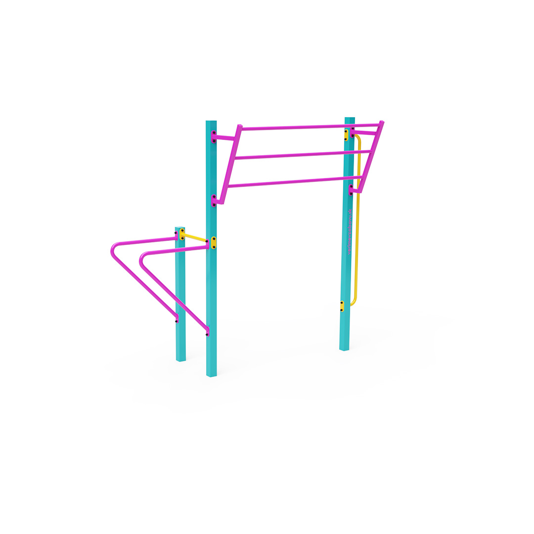 Workout je stále populárnější formou venkovního cvičení, které primárně využívá vlastní tělesnou hmotnost. Rozmanitost cviků, které umožňuje cvičební vybavení a sestavy, v kombinaci s čerstvým vzduchem činí tuto aktivitu pestrou a poutavou. To prospívá nejen fyzickému zdraví, ale také přispívá k duševní pohodě. Tato malá sada pro street workout obsahuje hrazdy, šikmý žebřík a svislou hrazdu.