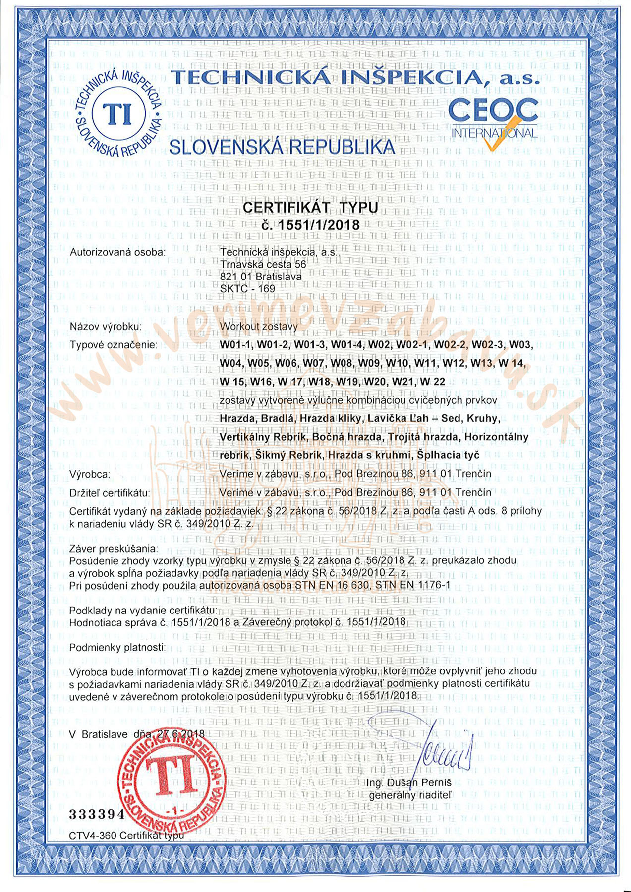 Všechny naše prvky v nabídce prošly kontrolou Technické inspekce a.s., podle příslušné normy, což dokazují i certifikáty které můžete najít na webu u každého produktu. Přestože jsou všechny naše výrobky schváleny Technickou inspekcí a.s., nejpřísnějšími kontrolory jsou pro nás ti, kteří se na cestu za zábavou vydají – a nejsou to jen děti.
