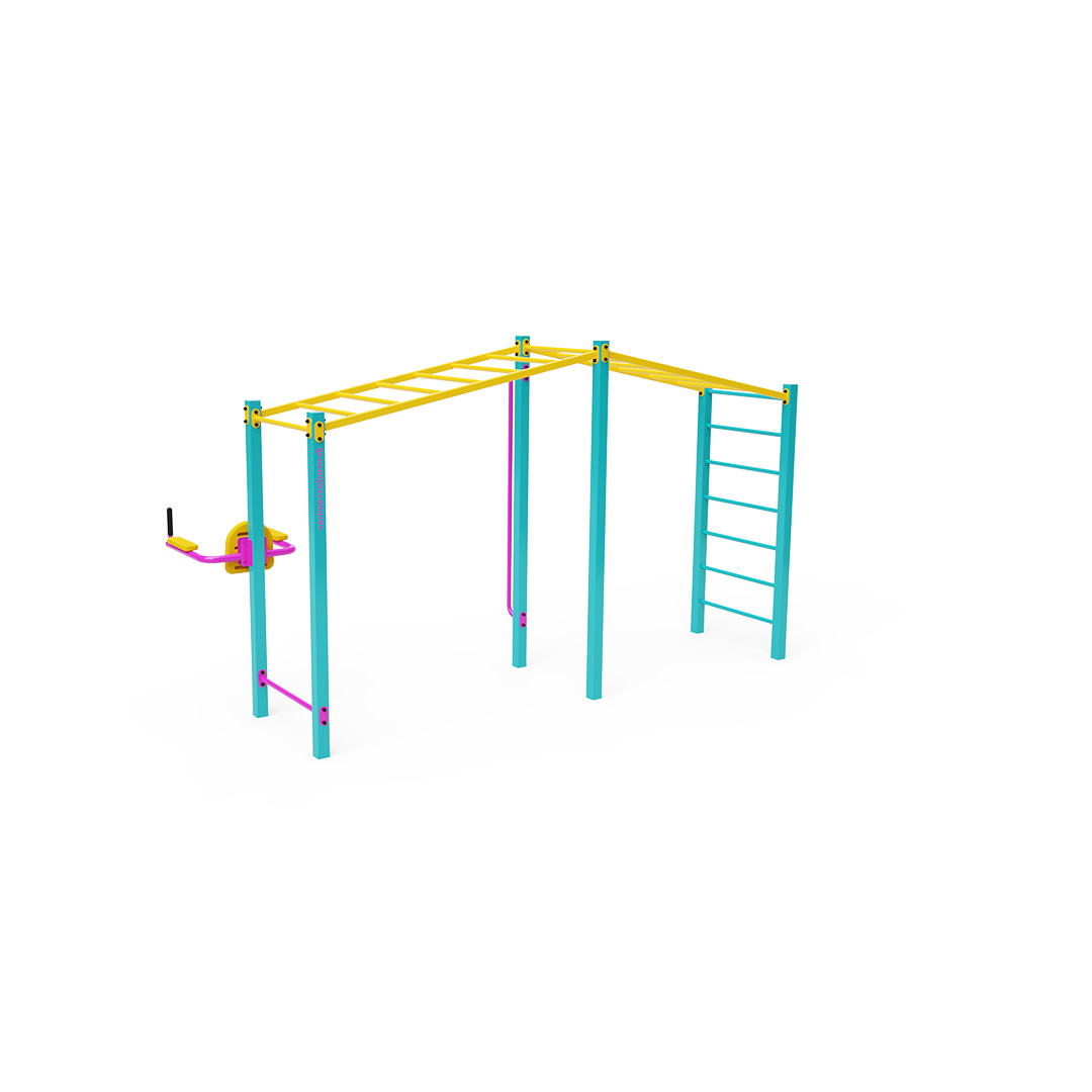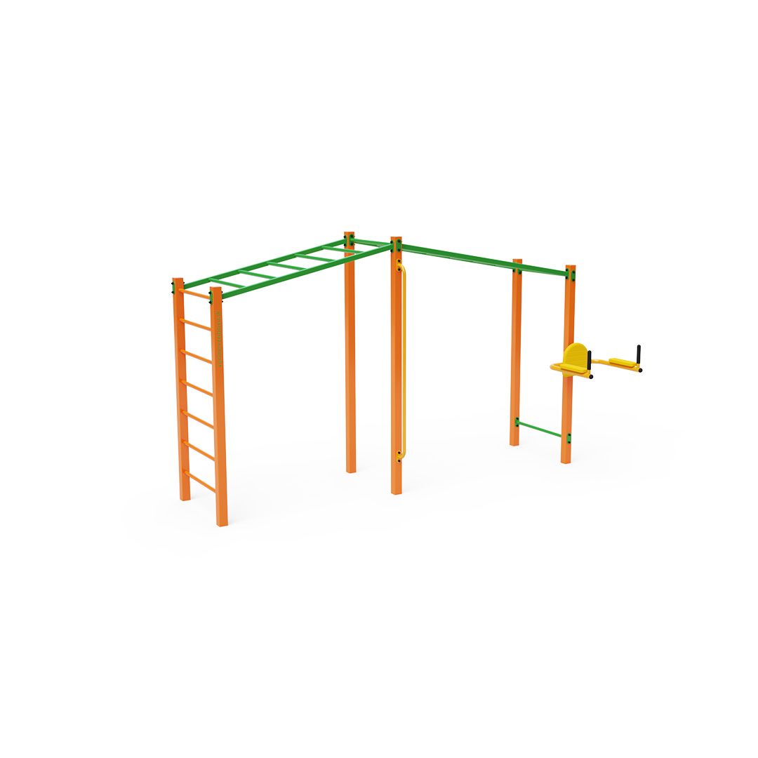 Cvičení je stále populárnější formou venkovního cvičení, které primárně využívá vlastní tělesnou hmotnost. Rozmanitost cviků, které umožňuje cvičební vybavení a sestavy, v kombinaci s čerstvým vzduchem činí tuto aktivitu pestrou a poutavou. To prospívá nejen fyzickému zdraví, ale také přispívá k duševní pohodě. Tato sada obsahuje horizontální žebříky vhodné pro shyby, traverzy a další cviky, doplněné nízkou hrazdou, svislou hrazdou, šikmým žebříkem a posilovačem břišních svalů.