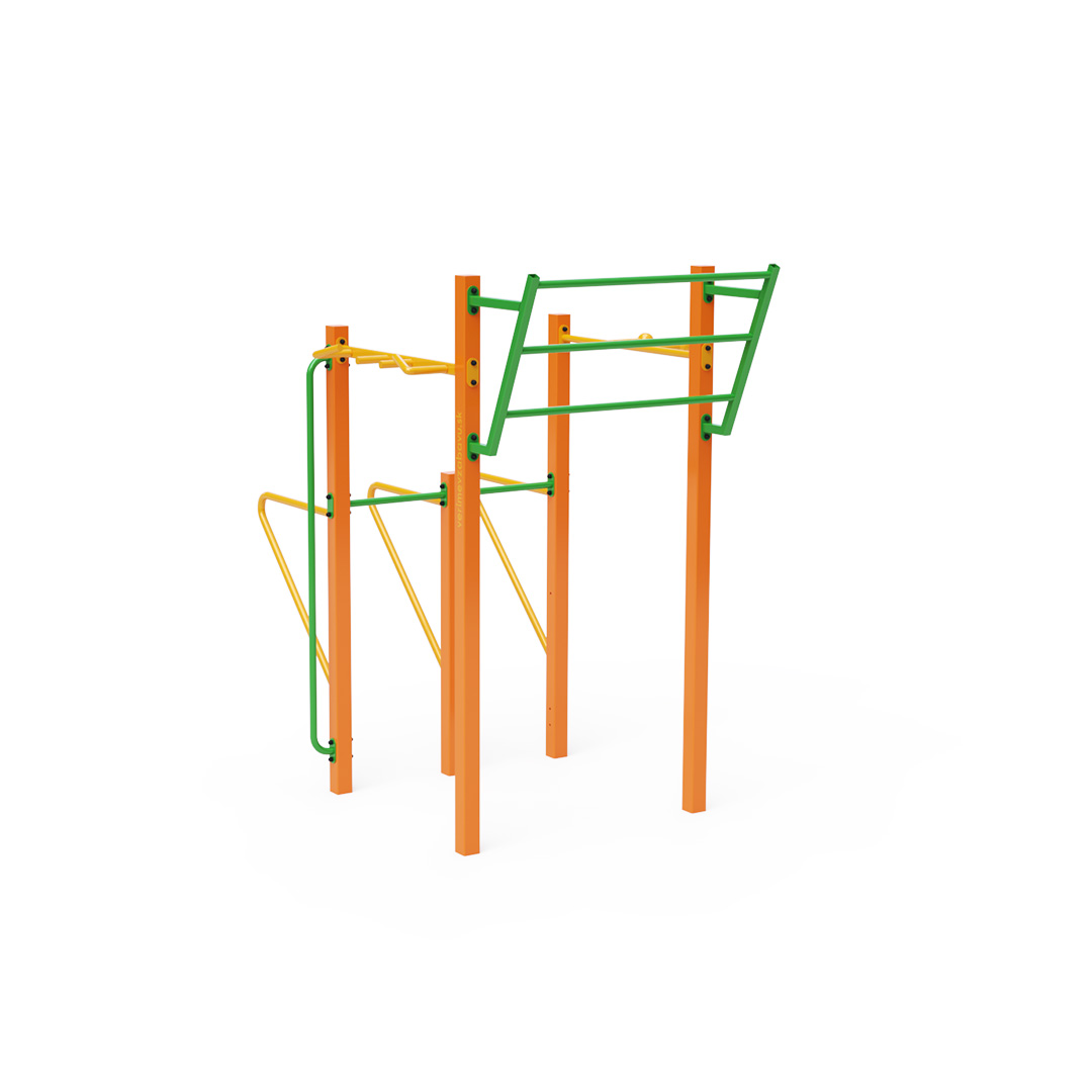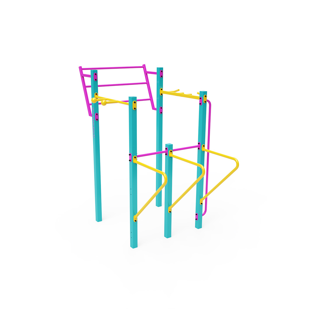 Workout je stále populárnější formou venkovního cvičení, které primárně využívá vlastní tělesnou hmotnost. Rozmanitost cviků, které umožňuje cvičební vybavení a sestavy, v kombinaci s čerstvým vzduchem činí tuto aktivitu pestrou a poutavou. To prospívá nejen fyzickému zdraví, ale také přispívá k duševní pohodě. Tato menší sada obsahuje svislou hrazdu, hrazdy a šikmou nástěnnou hrazdu, doplněnou dvojitými bradly.
