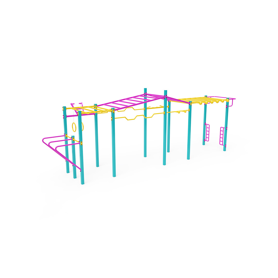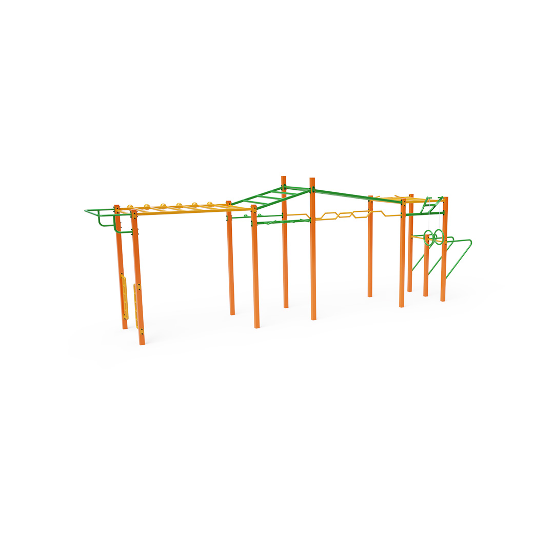 Workout je stále populárnější forma venkovního cvičení, která využívá primárně tělesnou hmotnost. Cvičení je rozmanité díky prostředí čerstvého vzduchu a široké škále cviků, které umožňují cvičební prvky a sestavy. Prospívá nejen fyzické, ale i psychické pohodě. Velká sestava s různými konfiguracemi hrazd, bradel a žebříků, doplněná kruhy a vertikálním žebříkem na kliky.