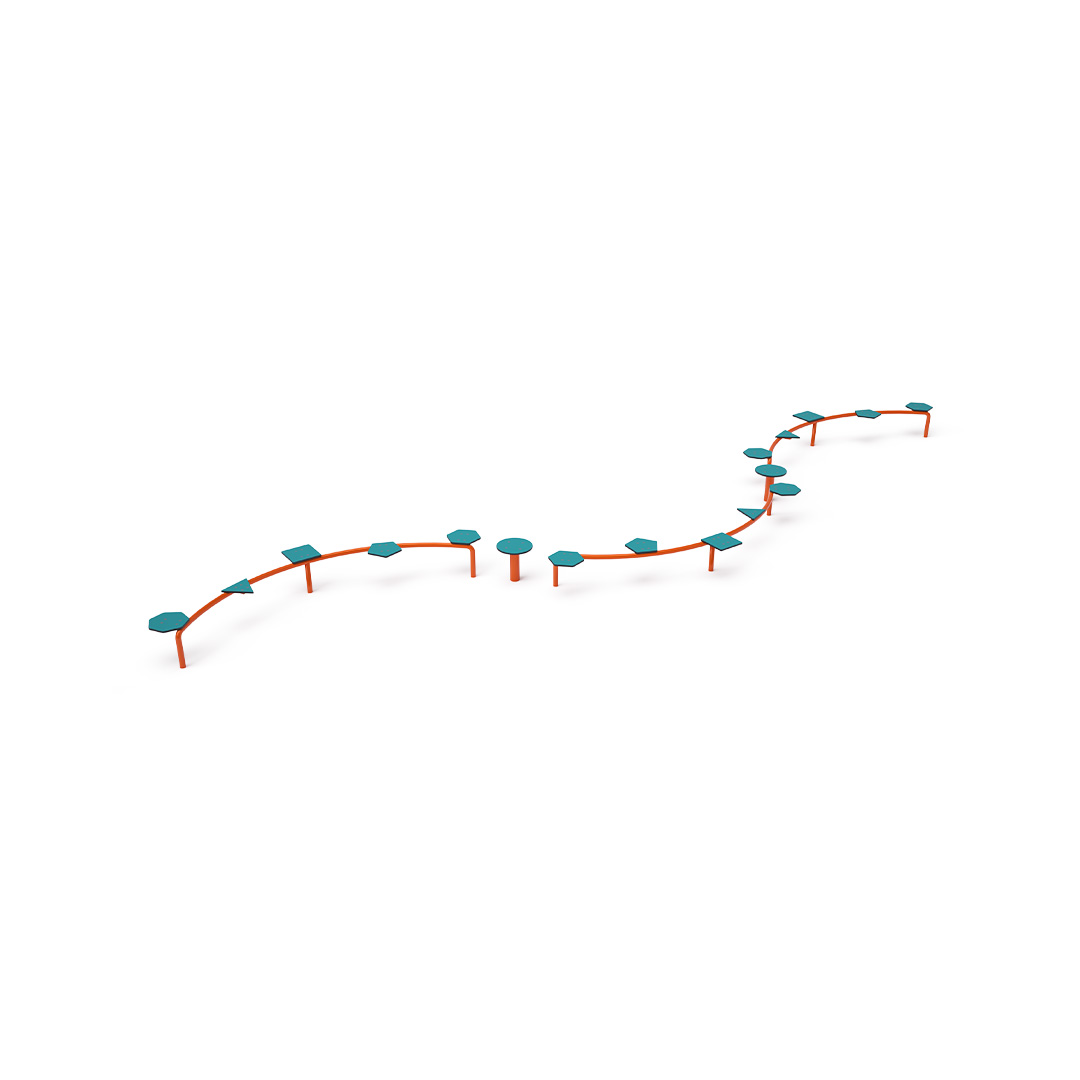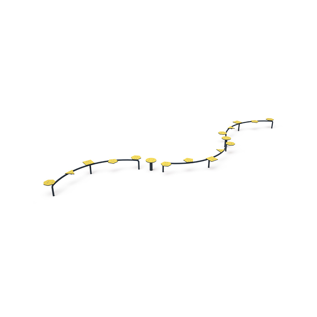 Bezúdržbová balanční trojitá kladina na přeskakování je herním prvkem, díky kterému děti trénují svou koordinaci a rovnováhu. Je vyrobena ze žárově zinkované oceli, která je upravena práškovou vypalovanou barvou. Plocha na chození je vyrobena z protiskluzového HPL materiálu. Spojovací materiály jsou nerezové. Jako dopadovou plochu lze použít travnatý povrch, doporučujeme však zatravňovací rohož.