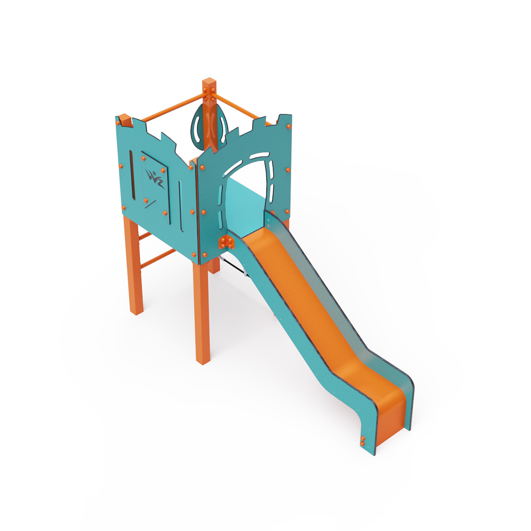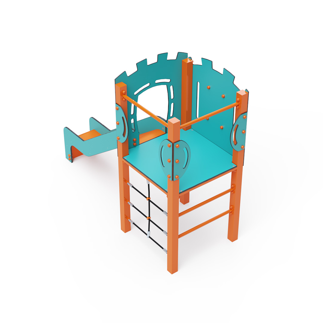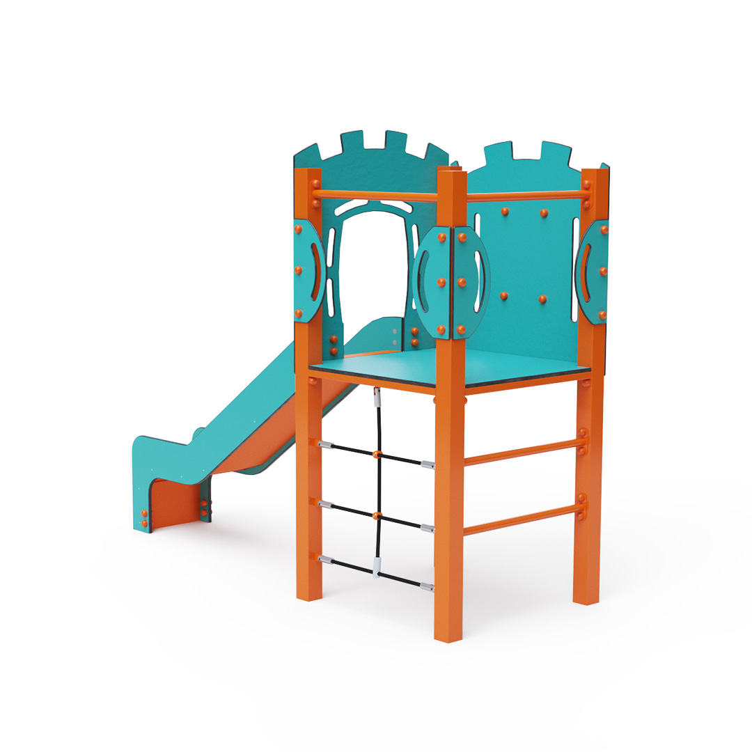 Jednověžová kombinovaná sestava - věž, na kterou děti vylezou po žebříku nebo lanovém výlezu a dolů se mohou spustit po skluzavce. Ocelová konstrukce je odolná vůči povětrnostním vlivům díky zinkování a lakování odolnou práškovou barvou. Použitý HPL materiál je chemicky odolný, odolný vůči UV záření – stálobarevný, netoxický, recyklovatelný a nelámavý. Nehrozí tak poranění dětí ostrými hranami nebo úlomky. Lana jsou vyrobena z polyesterových vláken, která jsou vinuta kolem středové výztuže. Tato konstrukce lana zvyšuje jeho pevnost a odolnost proti mechanickému namáhání. Samotný polyester je odolný vůči mikroorganismům, povětrnostním vlivům, rychle schne po dešti, je stálobarevný a vyznačuje se vysokou pevností. Všechny spoje jsou nerezové a zakryté plastovými krytkami pro zvýšení životnosti a bezpečnosti.
