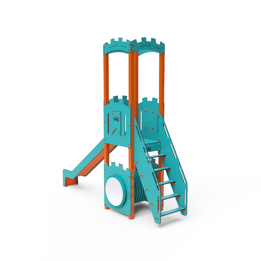 Jednověžová kombinovaná sestava - věž s hradbami, na kterou děti vylezou po schůdcích